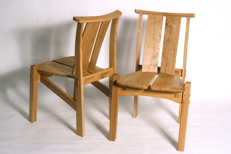Slant-leg chairs in oak.