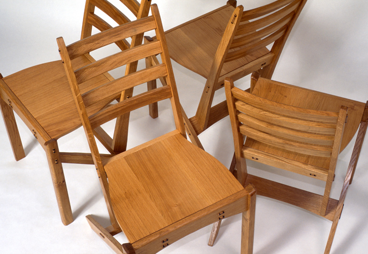 Board-back chairs in oak.