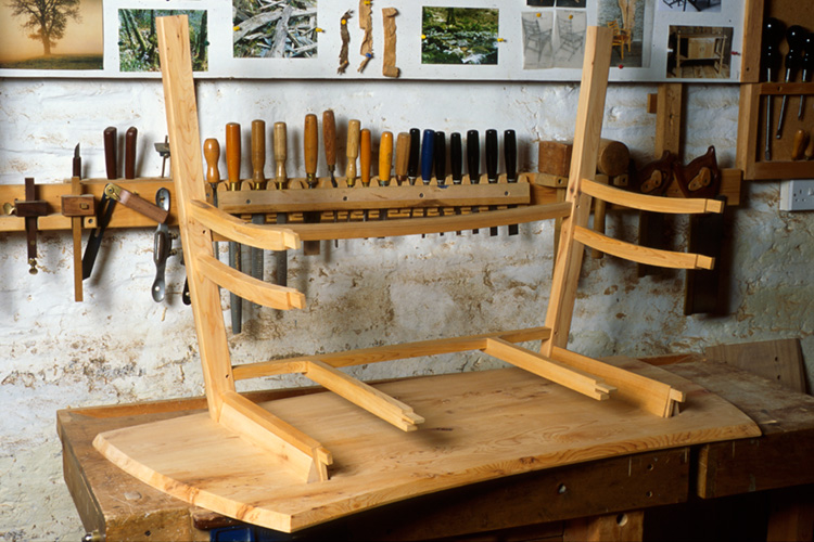 On the bench - ladderback chair assembly (yew wood).